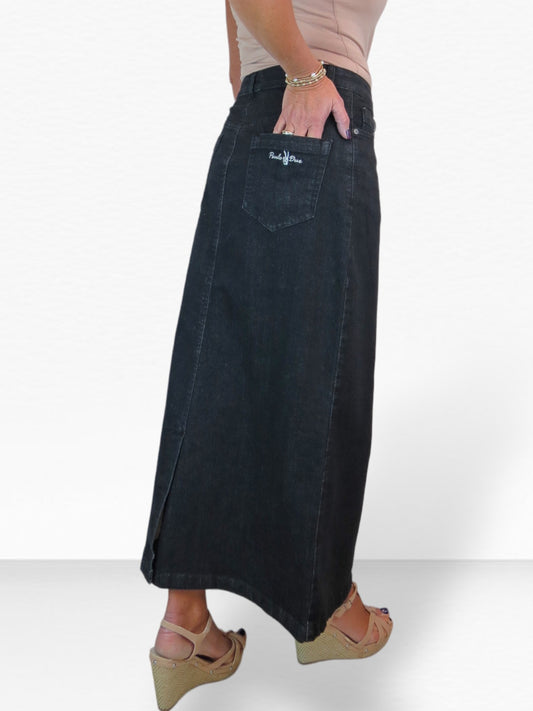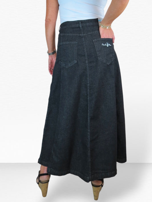 Stretch Denim Jeans Maxi Skirt Washed Black