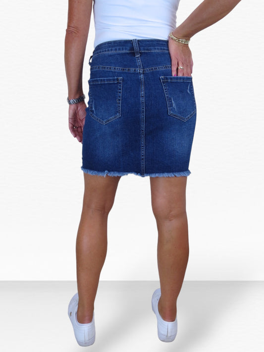 Women's Denim Mini Skirt with Frayed Hem Ripped + Frayed Hem