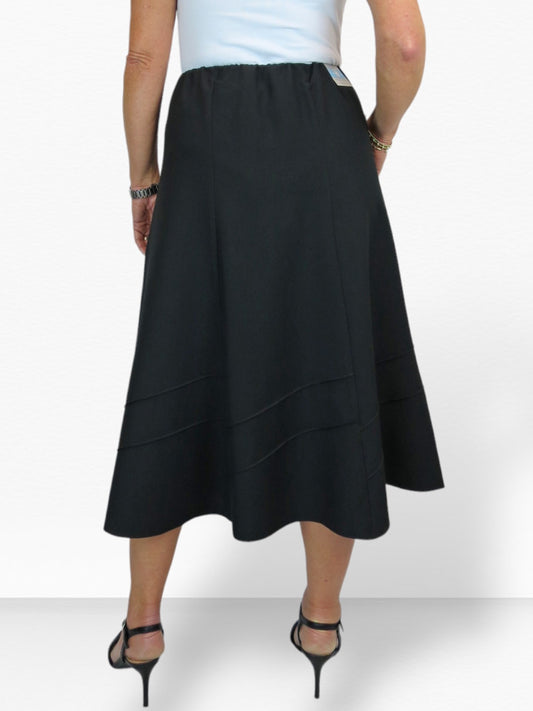 Women's Smart Flared Midi Skirt Elastic Waist Black