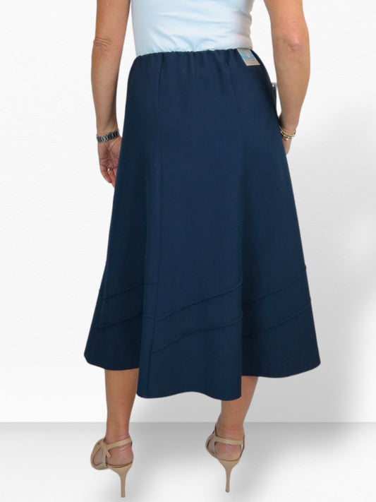 Women's Smart Flared Midi Skirt Elastic Waist Navy Blue