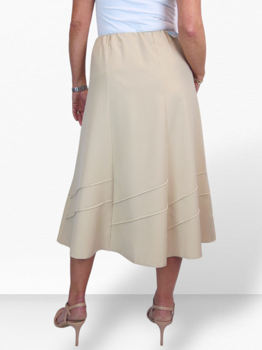 Women's Smart Flared Midi Skirt Elastic Waist Beige