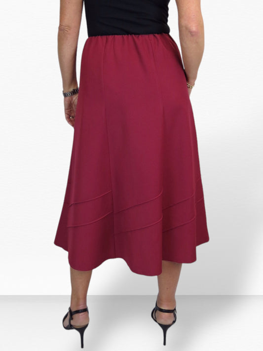 Women's Smart Flared Midi Skirt Elastic Waist Burgundy