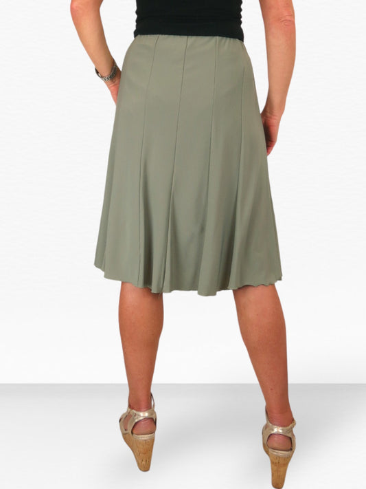 Fully Lined Stretch Below Knee Flare Skirt Olive