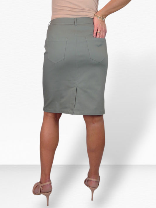 Women's Knee Length Stretch Chino Pencil Skirt Khaki Green