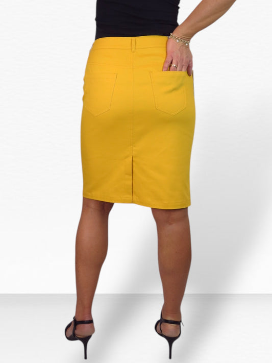 Women's Knee Length Stretch Chino Pencil Skirt Mustard Yellow