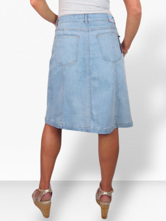 Women's Panelled Denim A Line Skirt Light Bleach Wash