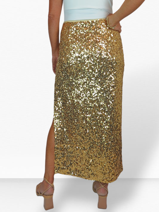 Women's Sequin Maxi Skirt With Side Slit Gold