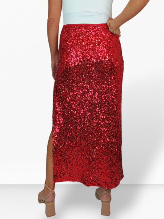 Women's Sequin Maxi Skirt With Side Slit Multicoloured