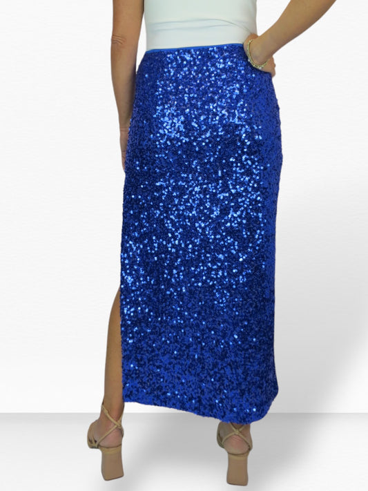 Women's Sequin Maxi Skirt With Side Slit Royal Blue