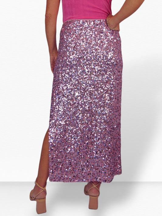 Women's Sequin Maxi Skirt With Side Slit Hot Pink