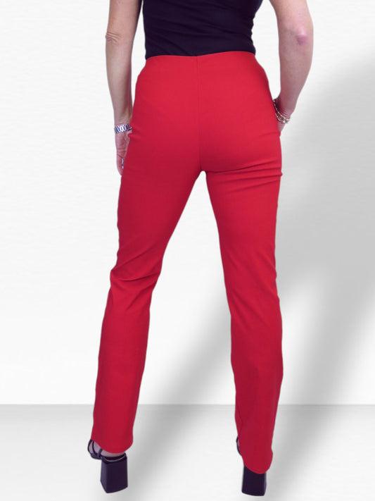 Elasticated Waist Straight Leg Trousers Red