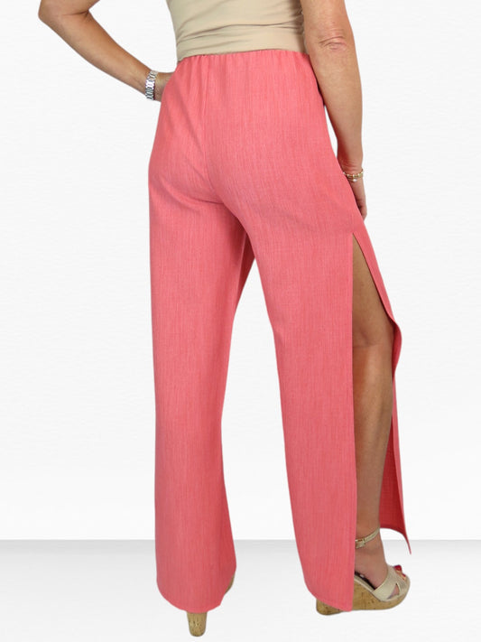 Women's Linen Look Open Leg Trousers Coral