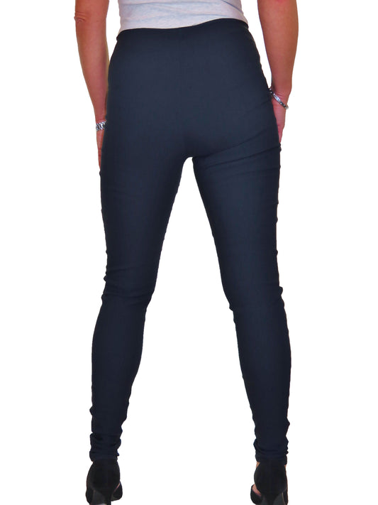 Ladies Skinny High Waist Trousers Navy Blue