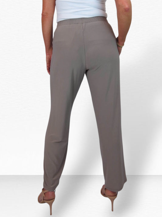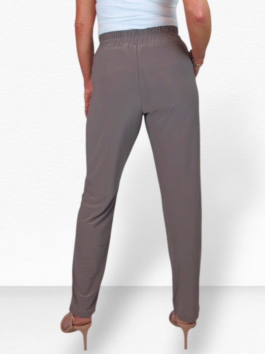 Women's Elasticated Waist Straight Leg Trousers Taupe