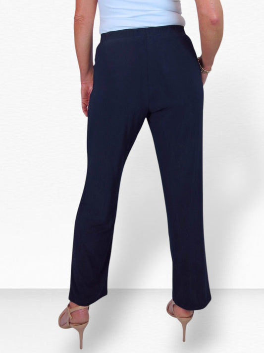 Women's Elasticated Waist Straight Leg Trousers Navy Blue