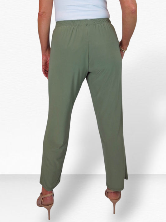 Women's Elasticated Waist Straight Leg Trousers Olive Green