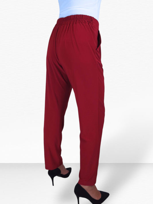Women's Smart Work Elasticated Waist Trousers Deep Red