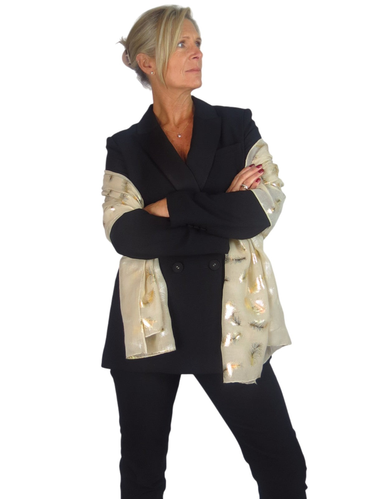 Ladies Soft Voile Lightweight Scarf Shawl Wrap with Gold Feather Design