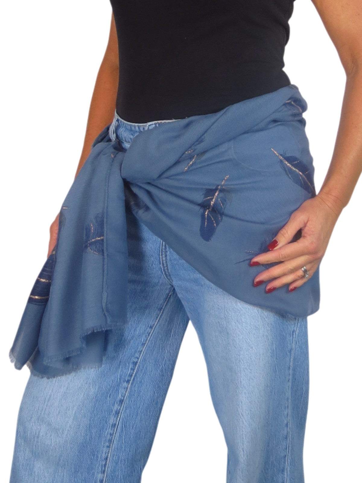 Discover the perfect blend of elegance and versatility with our Ladies Lightweight Feather Print Scarf by Paulo Due. Precision-crafted from 100% viscose, this fine soft shawl wrap features a subtle matte texture and shimmering gold lurex details woven into elegant feather designs making it a standout women's fashion accessory.