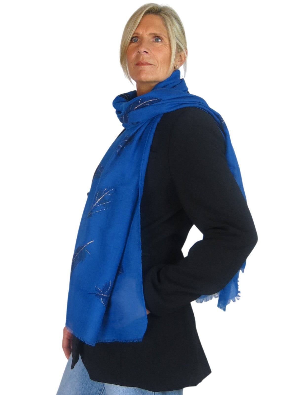 Golden Feather Print Scarf Royal Blue