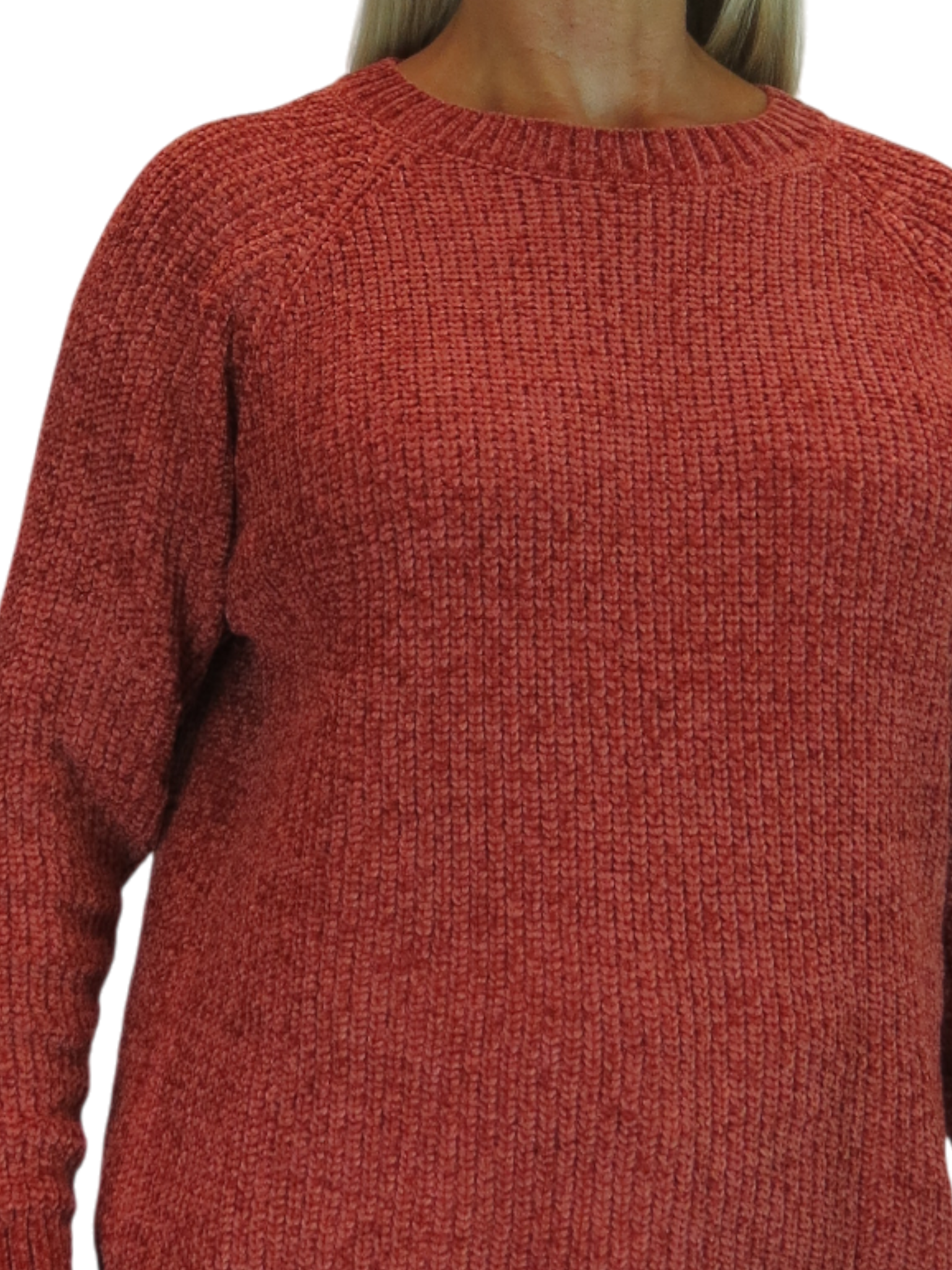 Long Sleeve Chenille Crew Neck Jumper Rust