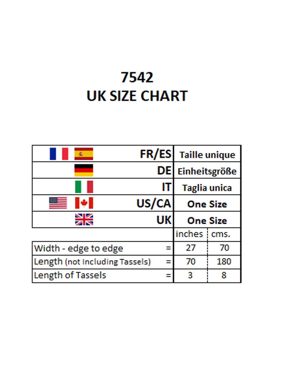 Generous in size, this scarf measures 70" in length and 27" edge-to-edge, offering ample coverage to wear as a shawl, wrap, or around the neck.