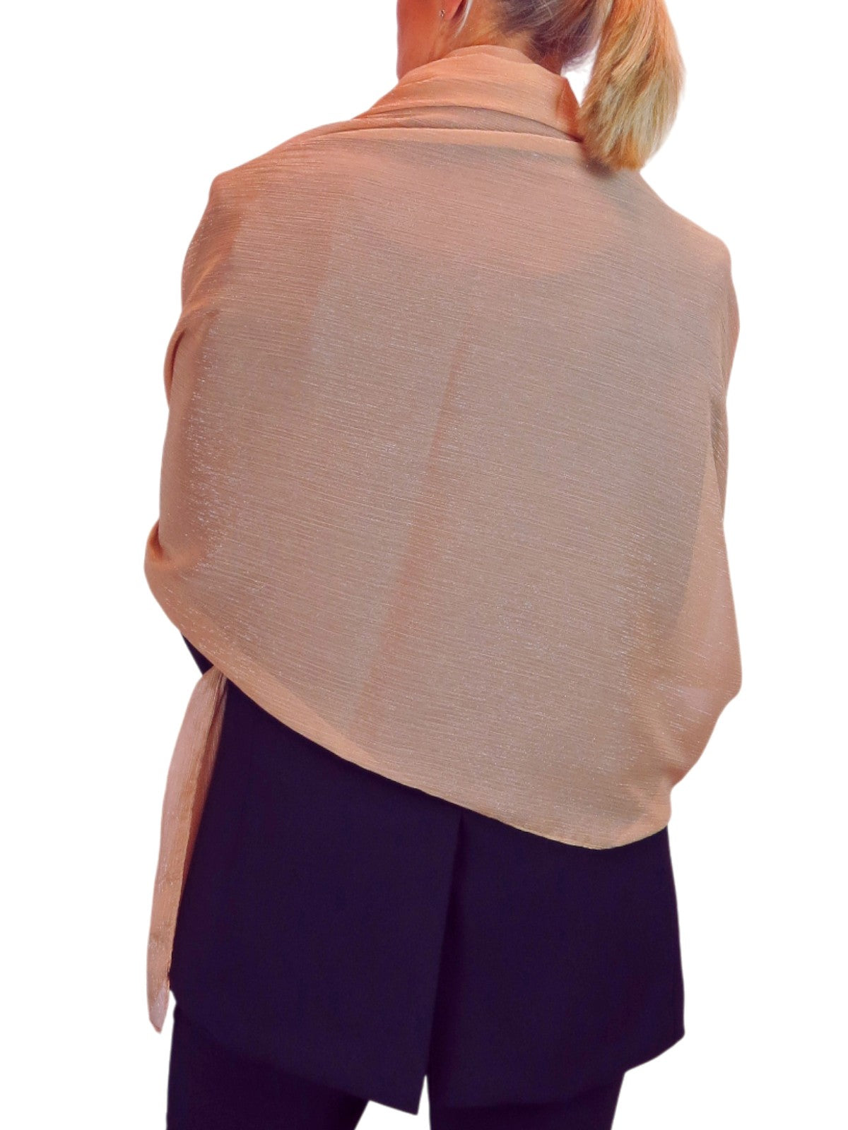 This women's silk voile shawl blends elegance, versatility, and glamour. The Metallic Threads shimmer adds a delicate sparkle while the oversized, lightweight design allows endless styling options. Perfect for evenings, travel, weddings, or simply elevating your casual look.