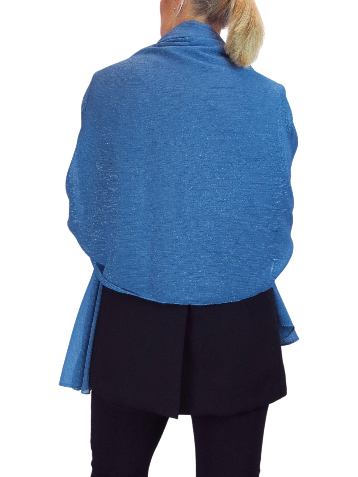 Silk Blend Scarf with Metallic Threads Mid Blue