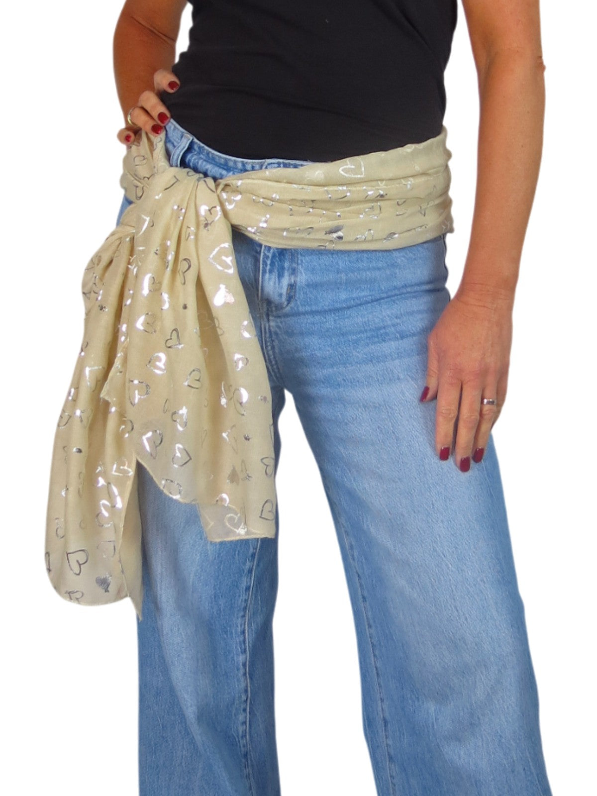 Silver Heart Design Cotton Scarf Beige
