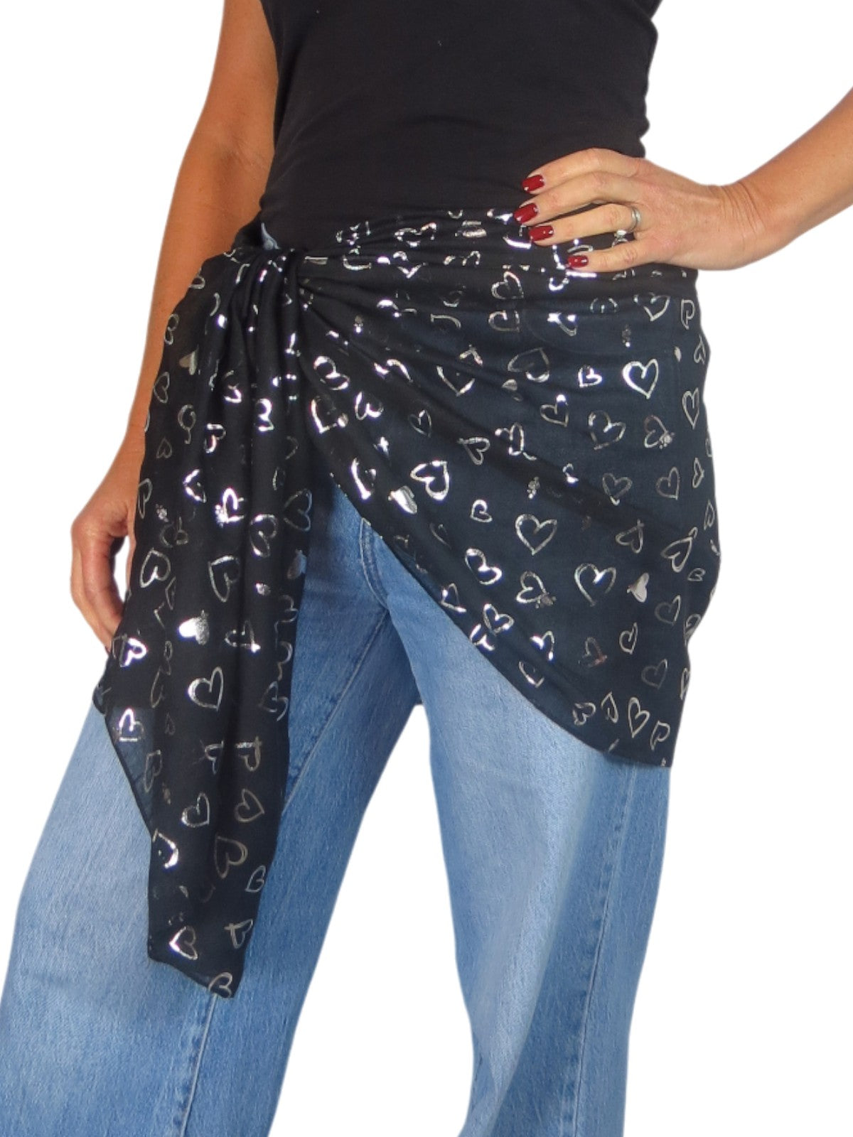 Silver Heart Design Cotton Scarf Black