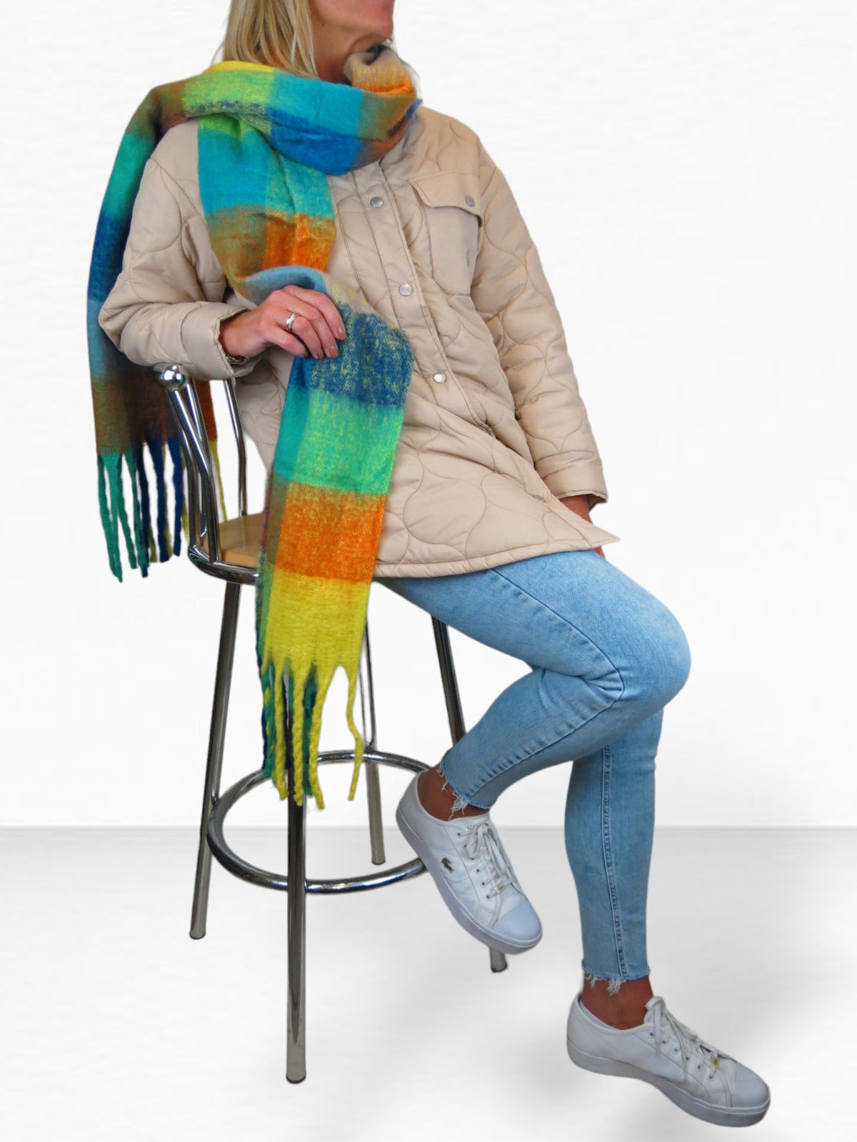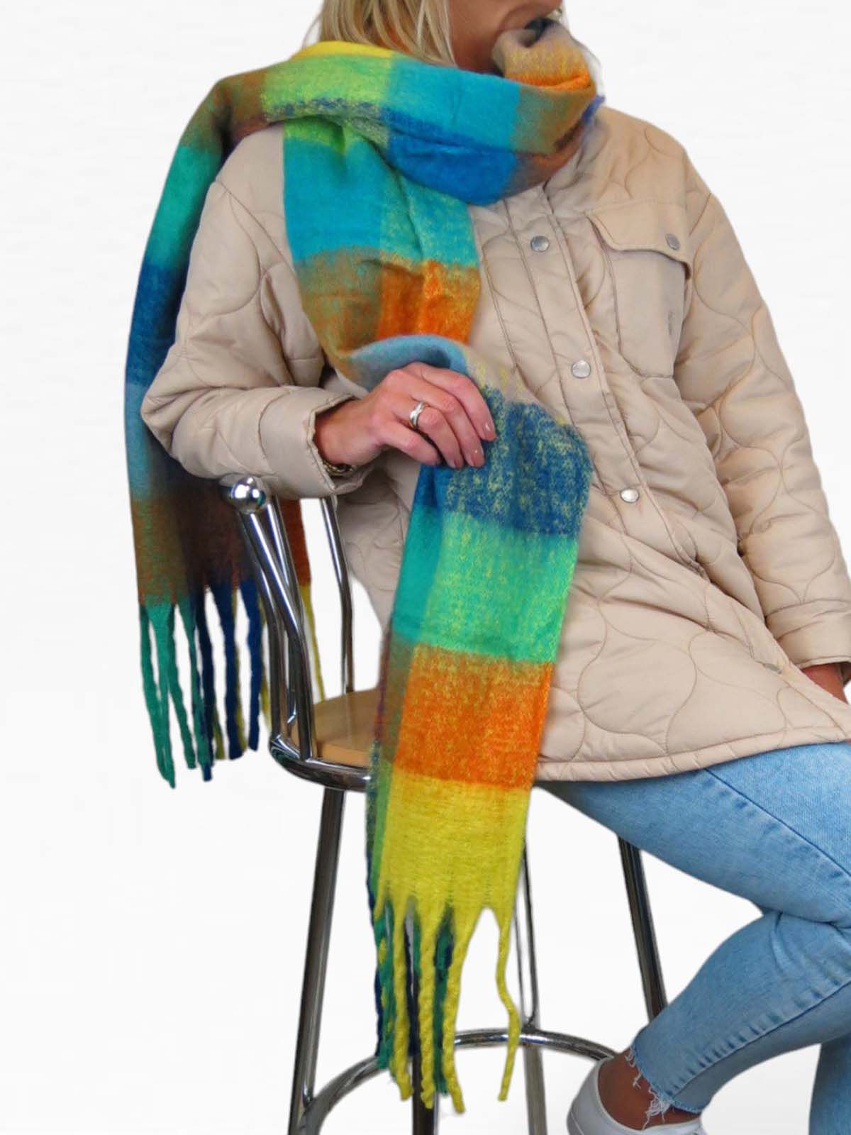 This blanket scarf has a great soft, warm and elegant feel due to the wool mix used, we had comfort and style in mind.