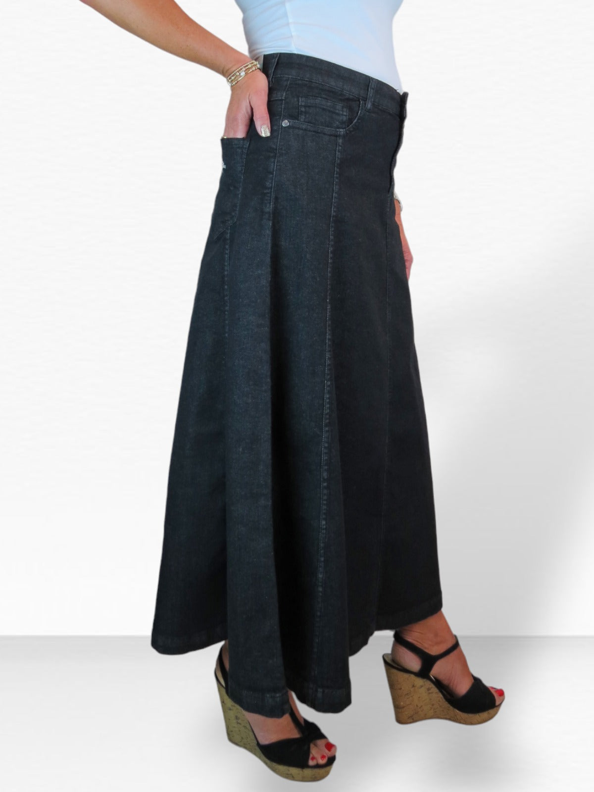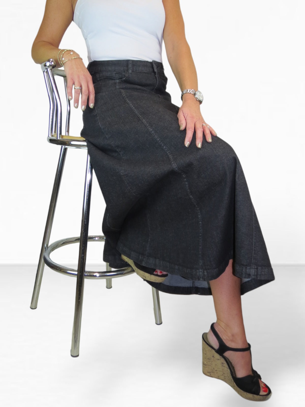Jane I already have the blue denim version of this skirt and was equally pleased with this one. Perfect fit, easy to wear, love it!
