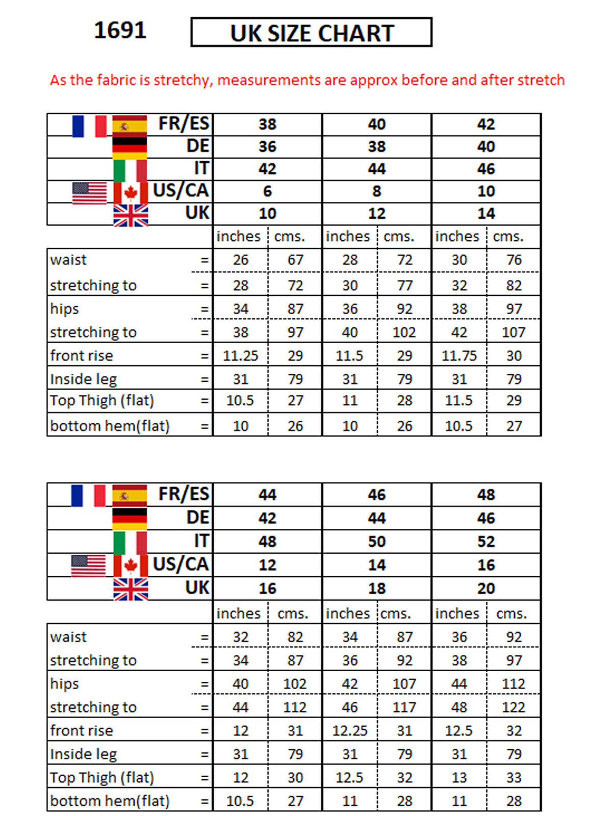 - Measurements - see UK size chart in pictures
