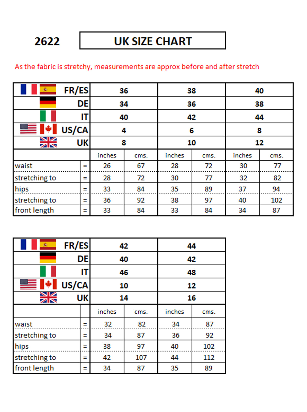 Please note, all sizes on the site are in UK sizes. Use this chart below for other European and US Size conversions.