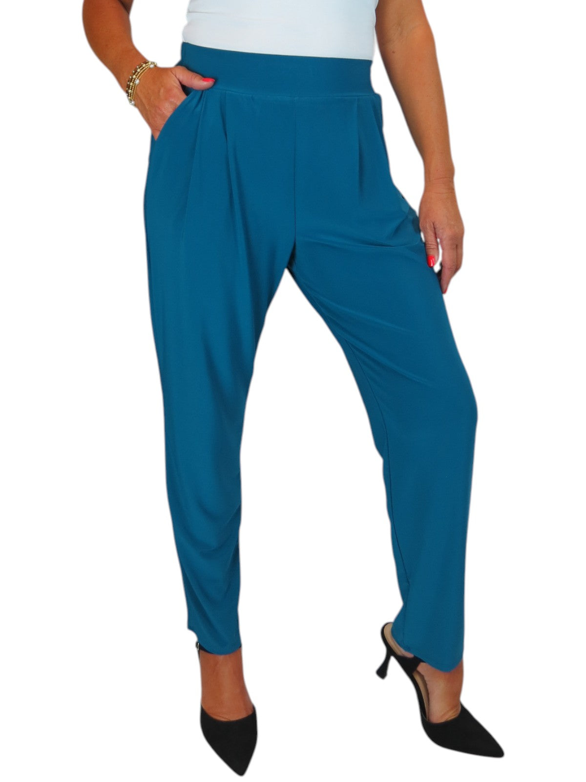 Women's Smart Work Elasticated Waist Trousers Teal Blue