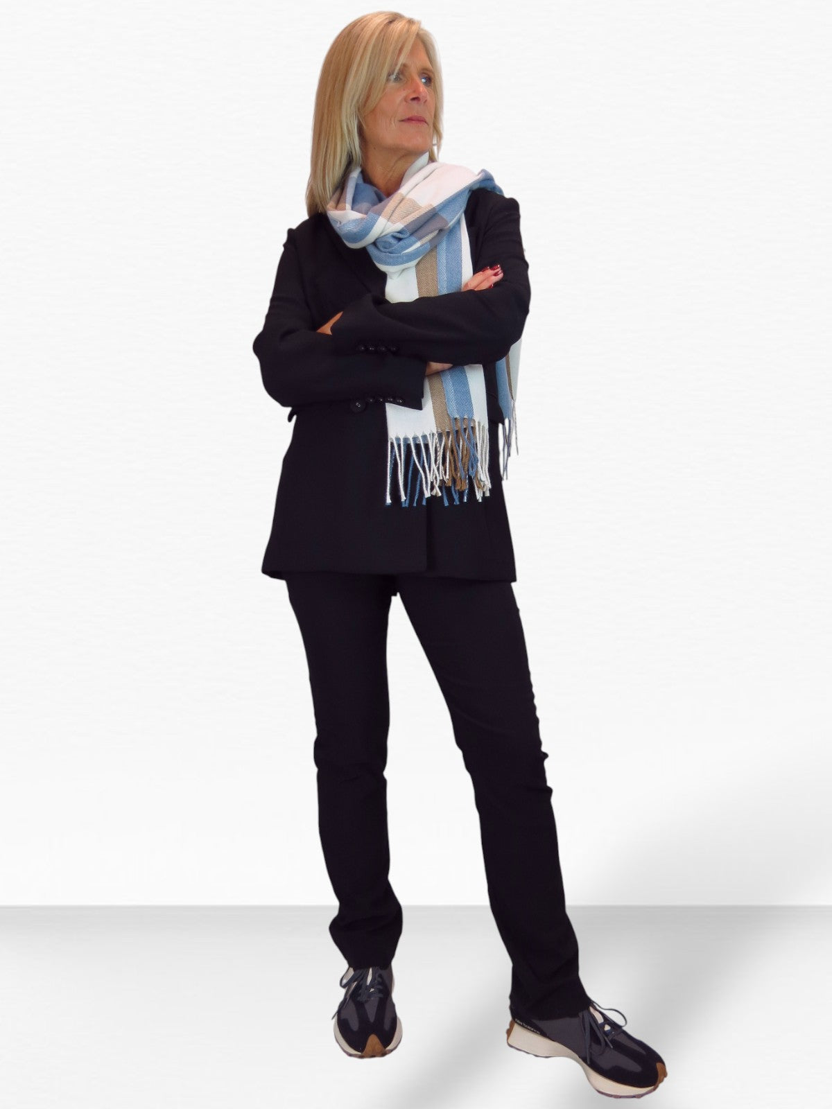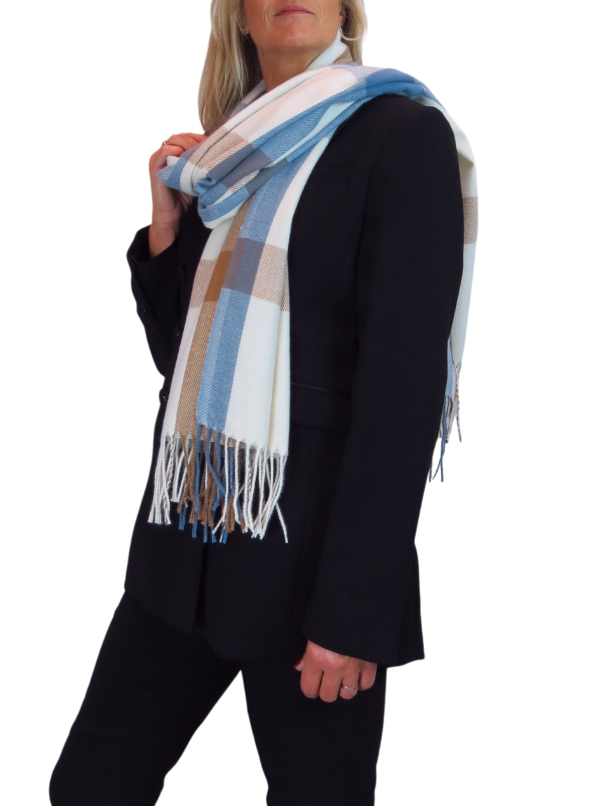 This fine wool pashmina scarf is the perfect winter accessory. Its reversible plaid design suits both casual and smart looks, while the soft texture and large size make it practical and cosy. Wrap it around your shoulders, layer it over a coat, or wear it as a statement piece to elevate your outfit.